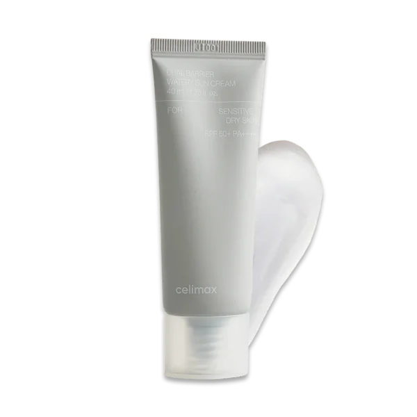 Celimax โ Dual Barrier Watery Sun Cream SPF50+ PA++++, 40 ml este o cremฤ de protecศie solarฤ mineralฤ cu texturฤ lejerฤ, conceputฤ pentru piele sensibilฤ sau uscatฤ. Formula include filtre fizice (zin-oxid non-nano) pentru protecศie UVA/UVB, รฎmpreunฤ cu un complex de 5 tipuri de ceramide ศi ingredientul brevetat Aquatideยฎ, care susศin bariera pielii ศi menศin hidratarea.