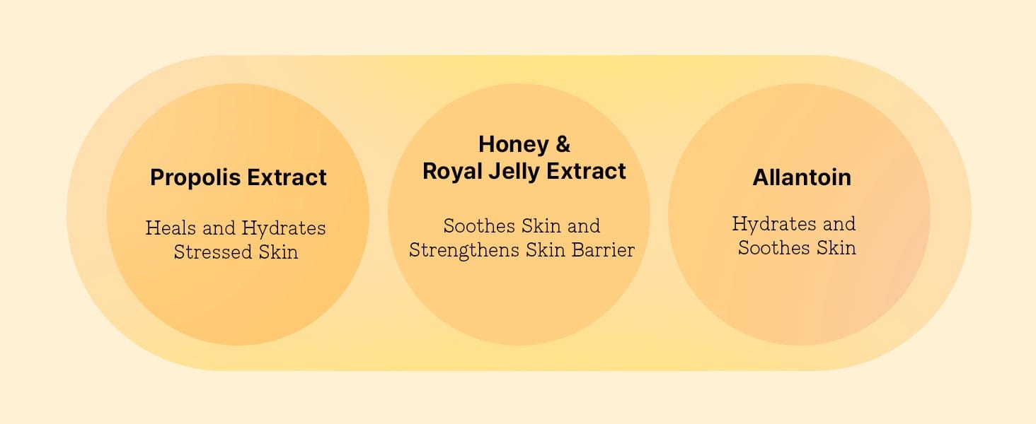 - Extract de miere: Hidratează, netezește, are efecte antioxidante și regenerează pielea.