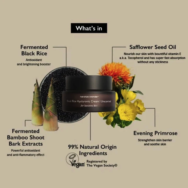 Crema hidratantฤ Black Rice Hyaluronic Unscented de la HaruHaru Wonder este special conceputฤ pentru a rฤspunde nevoilor pielii sensibile, oferind hidratare profundฤ, calmare ศi protecศie antioxidantฤ fฤrฤ a conศine parfum sau ingrediente iritante. Formula sa conศine extract fermentat de orez negru, recunoscut pentru proprietฤศile sale nutritive ศi anti-รฎmbฤtrรขnire, alฤturi de 10 tipuri de acid hialuronic, care hidrateazฤ pielea รฎn profunzime, menศinรขndu-i elasticitatea ศi confortul. Textura lejerฤ ศi non-grasฤ este idealฤ pentru utilizarea zilnicฤ, atรขt dimineaศa, cรขt ศi seara, fฤrฤ a รฎncฤrca sau a sensibiliza tenul.