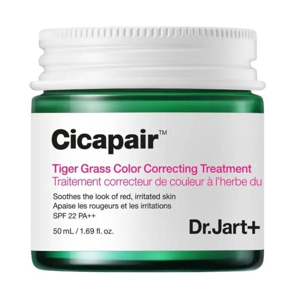 Dr.Jart+ โ Cicapair Tiger Grass Color Correcting Treatment โ 50ml este o cremฤ tratament multifuncศionalฤ, formulatฤ cu Centella Asiatica (Tiger Grass), conceputฤ pentru a calma pielea sensibilฤ, a reduce roศeaศa ศi a uniformiza instant nuanศa tenului. Formula sa inovatoare รฎศi schimbฤ culoarea la aplicare, adaptรขndu-se tonului pielii pentru un efect natural de corectare ศi iluminare.