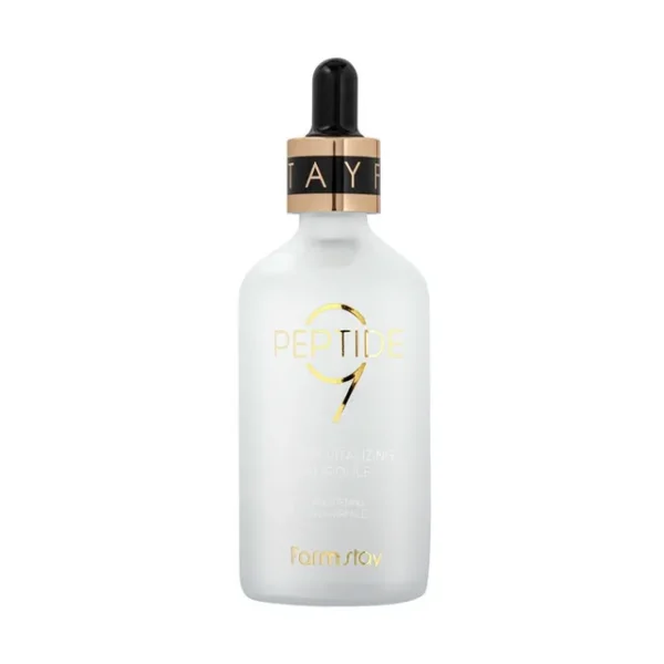 Farmstay โ Peptide 9 Super Vitalizing Ampoule, 100ml este un tratament concentrat anti-aging, formulat pentru a revitaliza pielea, a รฎmbunฤtฤศi fermitatea ศi a reduce vizibil liniile fine. Complexul de peptide susศine producศia naturalฤ de colagen, contribuind la un ten mai ferm, mai neted ศi plin de vitalitate. Formula hidratantฤ ศi regenerantฤ redฤ elasticitatea pielii ศi lumineazฤ tenul obosit.