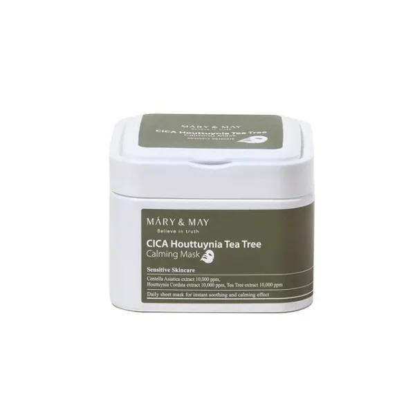 MARY & MAY CICA Houttuynia Tea Tree Calming Mask conține 30 de măști într-un recipient mare, oferind o soluție practică și eficientă pentru îngrijirea zilnică a pielii. Formula îmbogățită cu CICA, extract de houttuynia și ulei de arbore de ceai calmează pielea și ajută la reducerea problemelor cutanate, făcând acest produs ideal pentru tenul sensibil sau cu tendințe acneice. Designul ușor de utilizat permite extragerea individuală a fiecărei măști, reducând deșeurile și protejând mediul.