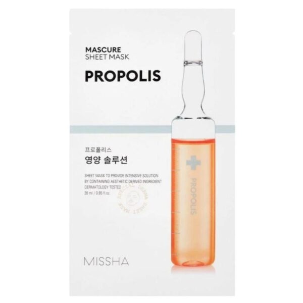 MISSHA – Mascure Solution Sheet Mask, Propolis, 28 ml este o mască tip șervețel nutritivă și revitalizantă, concepută pentru hidratare, calmare și susținerea unui ten mai luminos și mai uniform. Formula cu propolis ajută la hrănirea pielii și la menținerea confortului, fiind ideală pentru tenul tern sau obosit care are nevoie de un boost de vitalitate.