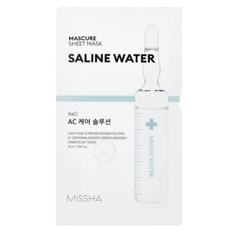 MISSHA – Mascure Solution Sheet Mask, Saline Water, 28 ml este o mască tip șervețel hidratantă și calmantă, concepută pentru refacerea confortului pielii, reducerea senzației de uscăciune și revitalizare. Formula cu apă salină ajută la liniștirea tenului sensibilizat și la menținerea echilibrului, oferind un aspect mai proaspăt și mai neted după utilizare.