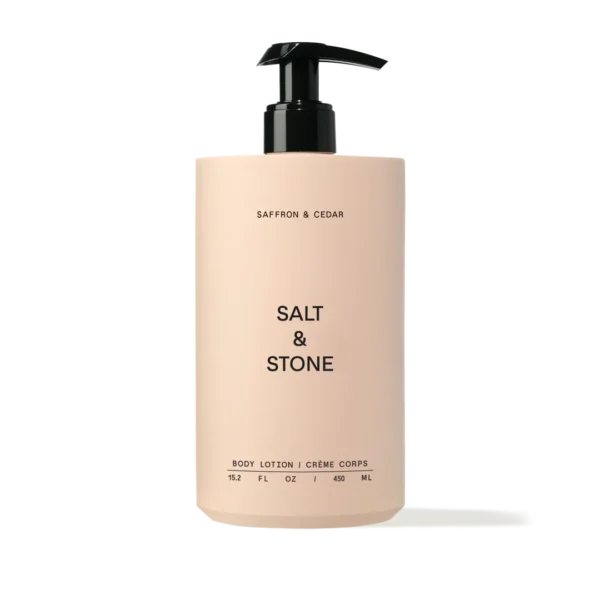 Salt & Stone – Body Lotion Saffron & Cedar, 450ml este o loțiune de corp cu textură lejeră, formulată pentru a hidrata intens pielea, a susține bariera cutanată și a lăsa o senzație de confort de lungă durată, în timp ce încântă simțurile cu un parfum cald și sofisticat de șofran și cedru. Ideală pentru îngrijirea zilnică, această loțiune hrănitoare lasă pielea moale, catifelată și delicat parfumată.