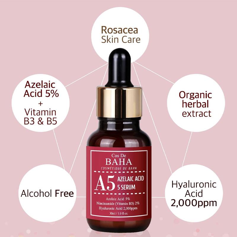 Acest ser de la Cos De BAHA, A5 Azelaic Acid 5 Serum, รฎntr-un flacon de 30ml, este un tratament ศintit, conceput pentru a calma tenul, a reduce roศeaศa ศi a uniformiza tonul pielii. Formula sa se bazeazฤ pe o concentraศie eficientฤ de 5% acid azelaic, un ingredient recunoscut pentru proprietฤศile sale antiinflamatoare, antibacteriene ศi de uniformizare a tonului, fiind ideal pentru tenul cu tendinศฤ acneicฤ, rozacee sau hiperpigmentare. Textura sa uศoarฤ se absoarbe rapid, oferind o senzaศie de confort ศi lฤsรขnd tenul cu un aspect mai clar ศi mai echilibrat. Este soluศia perfectฤ pentru a-ศi menศine tenul sฤnฤtos, cu un ton uniform ศi o texturฤ rafinatฤ.