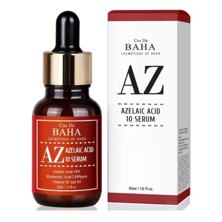Serul Cos de BAHA cu 10% Acid Azelaic (30ml) este un tratament eficient pentru combaterea imperfecศiunilor ศi uniformizarea nuanศei tenului. Acidul azelaic este un ingredient activ cu multiple beneficii, ideal pentru persoanele care se confruntฤ cu acnee, pete pigmentare ศi rozacee. Acesta ajutฤ la reducerea inflamaศiei, curฤศฤ porii ศi regleazฤ producศia de sebum, avรขnd ศi un efect de รฎmbunฤtฤศire a texturii pielii. Formulat pentru a fi delicat cu pielea, acest ser ajutฤ la obศinerea unui ten mai uniform, mai clar ศi mai sฤnฤtos.