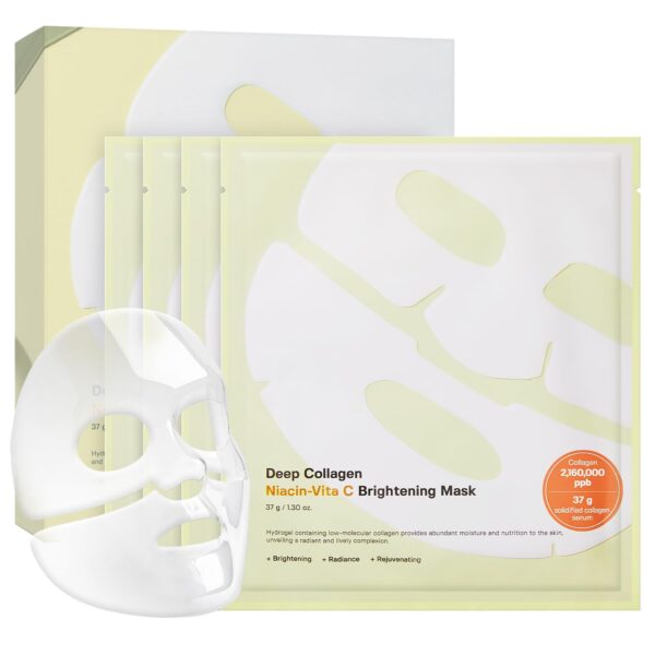 Sungboon Editor โ Deep Collagen Niacin-Vita C Brightening Mask, 37g x 4pcs este un set de mฤศti tip ศerveศel cu efect iluminator ศi revitalizant, formulate cu Niacinamide ศi Vitamina C pentru a uniformiza nuanศa pielii, a reduce petele pigmentare ศi a hidrata tenul รฎn profunzime. Combinaศia de ingrediente ajutฤ la obศinerea unui ten mai luminos, radiant ศi cu aspect mai tineresc, oferind รฎn acelaศi timp confort ศi hidratare.