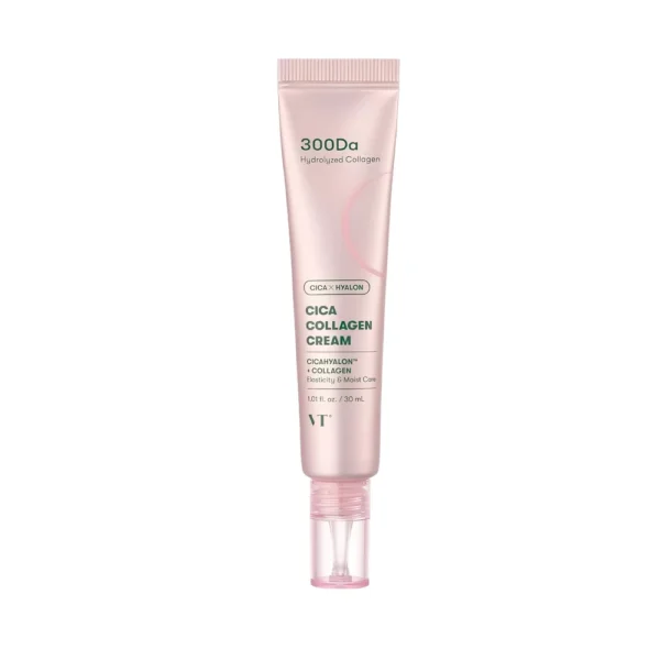 VT Cosmetics โ Cica Collagen Cream, 30ml este o cremฤ hidratantฤ ศi calmantฤ, formulatฤ pentru a susศine elasticitatea pielii, a รฎntฤri bariera cutanatฤ ศi a calma iritaศiile, oferind un ten mai neted, catifelat ศi confortabil. Combinaศia dintre Cica (Centella Asiatica) ศi colagen ajutฤ la revitalizarea pielii, susศinรขnd hidratarea de duratฤ ศi un aspect mai tรขnฤr ศi uniform.